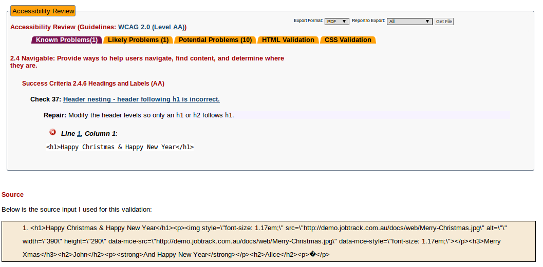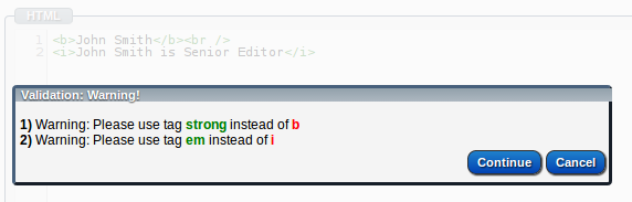 When a HTML component is changed validations for the validity and for accessibility will be performed.